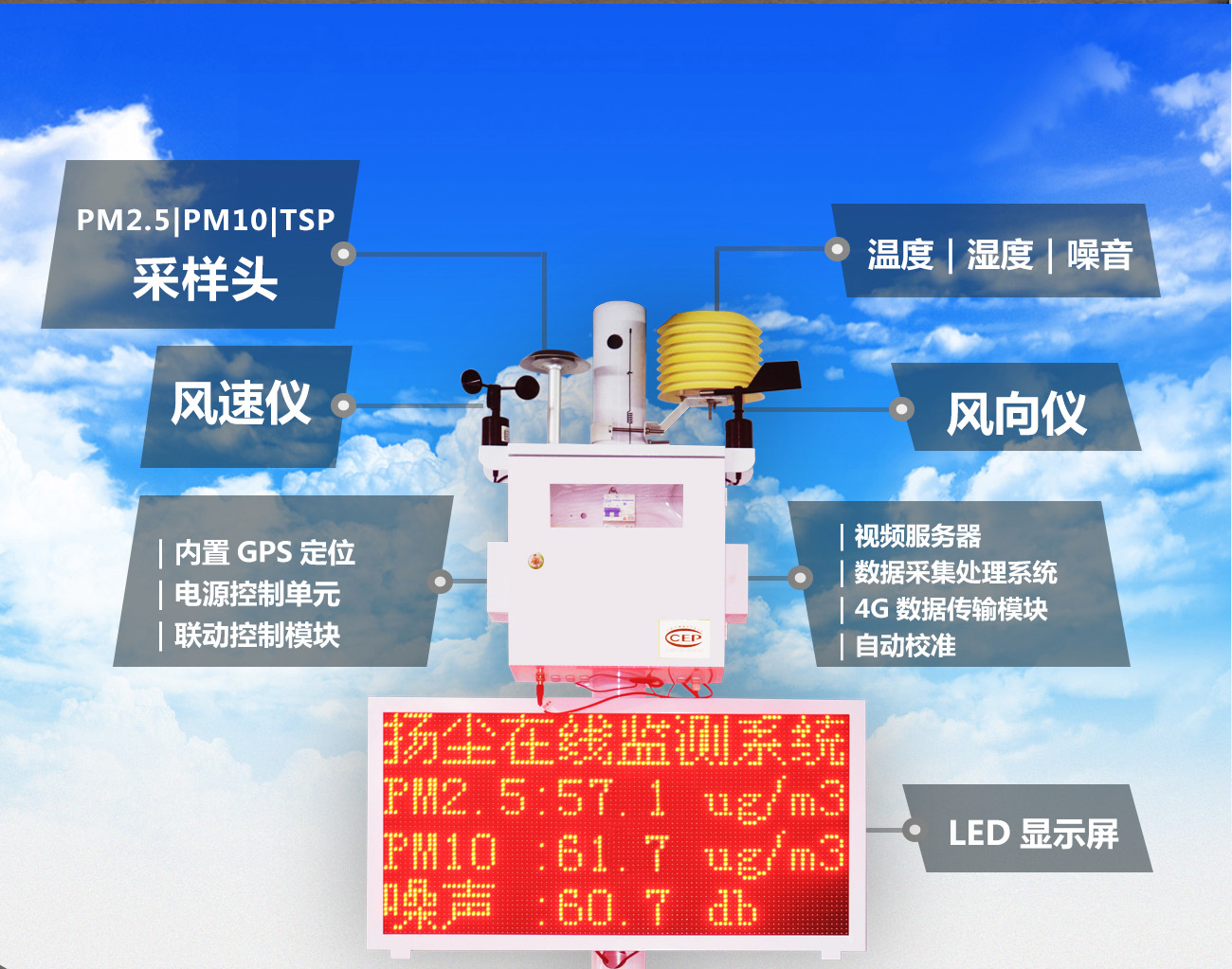 建筑工地?fù)P塵噪聲遠(yuǎn)程帶視頻在線監(jiān)測系統(tǒng)